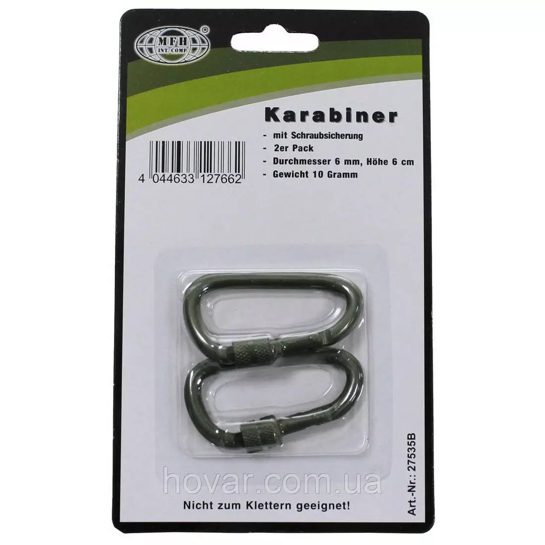 Карабін алюмінієвий з гвинтовим замком D 6 мм x 6 см, 2 шт олива