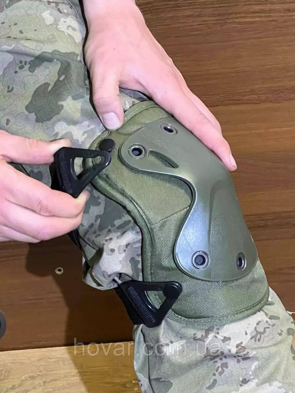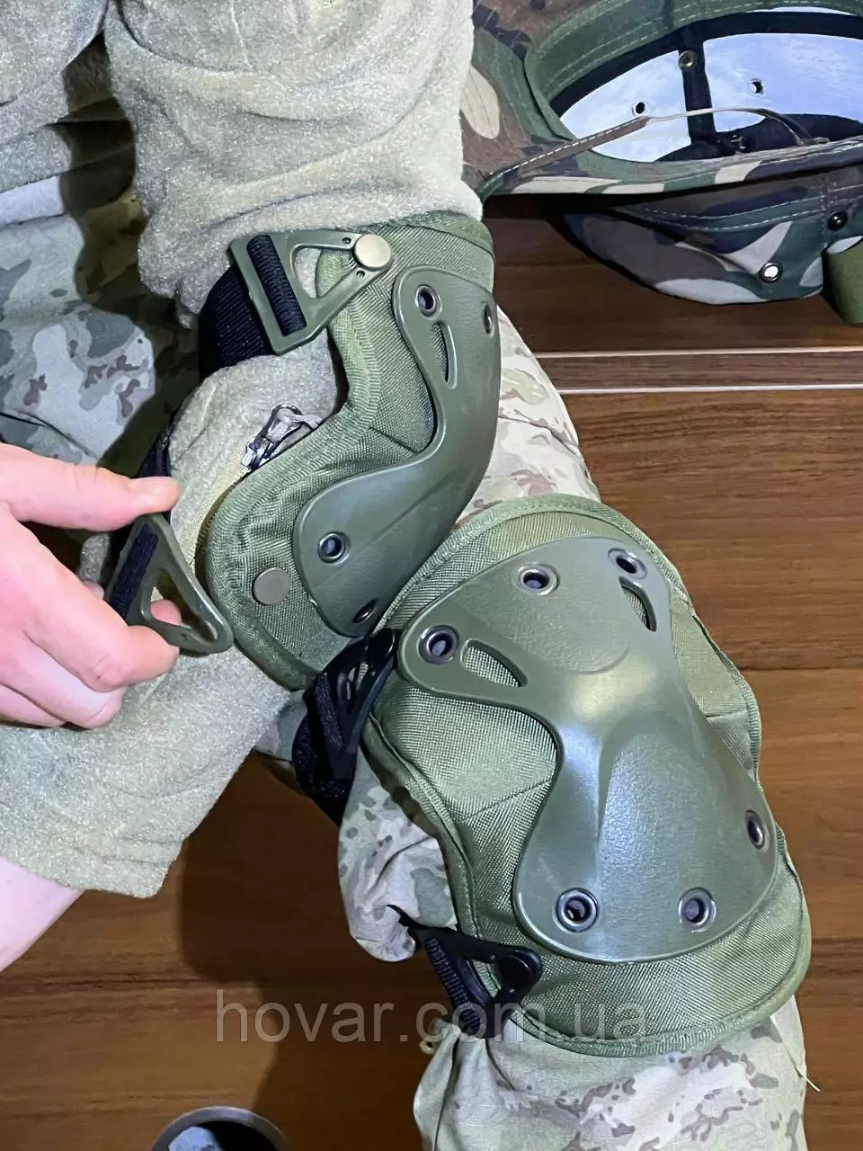 Тактичні наколінники і налокітники виконані з пластикової захисної панелі і м'якої основи, що амортизує та не обмежує рухи. Кріпиться двома еластичними стрічками з системою швидкого зняття. Розмір регулуюється.