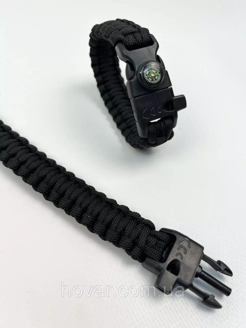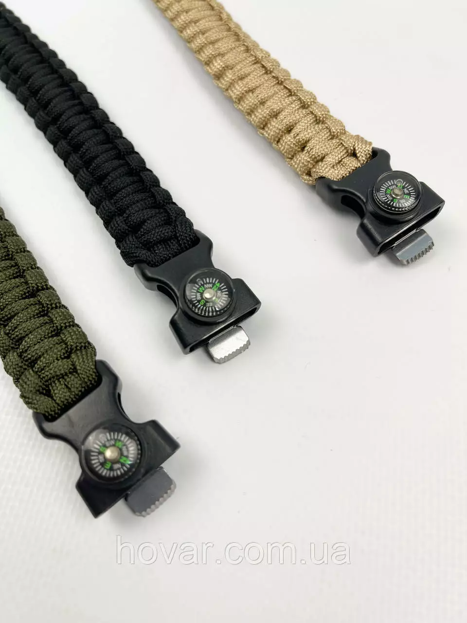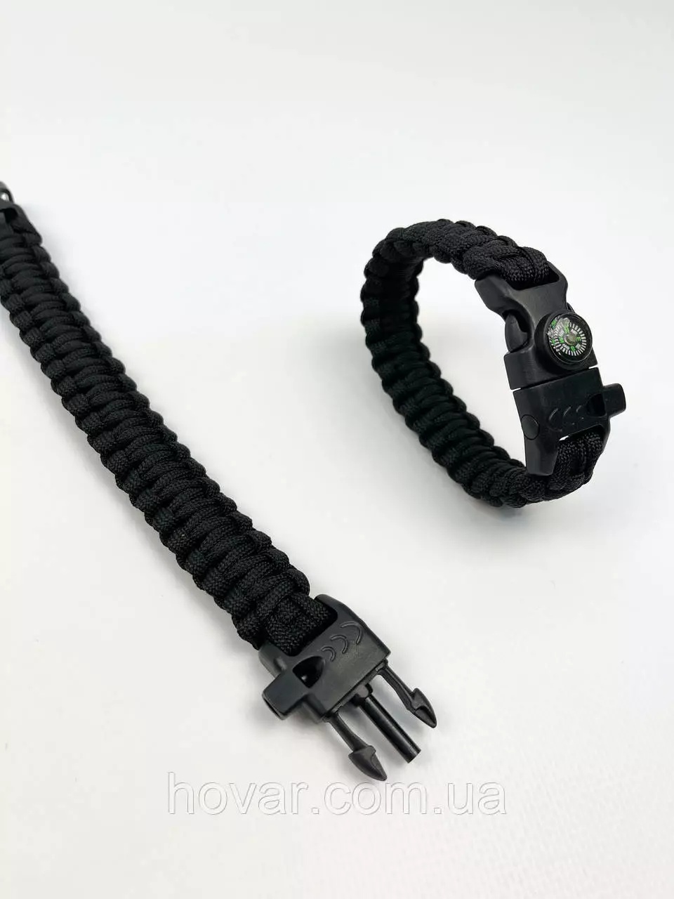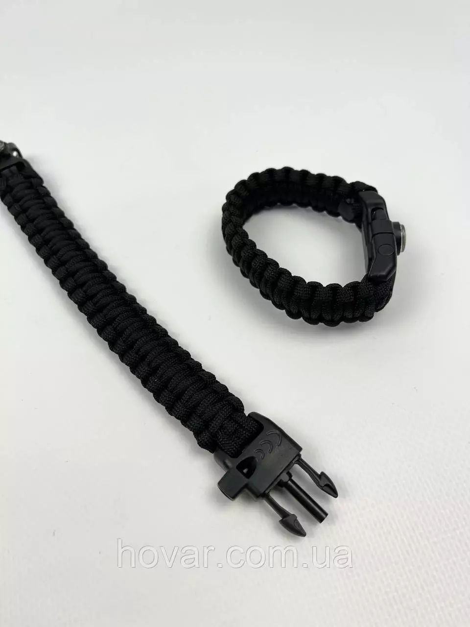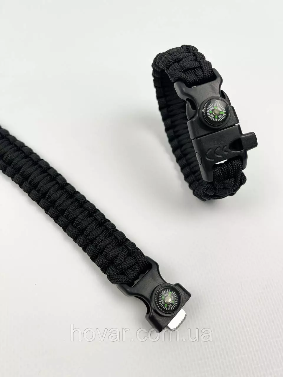 Багатофункціональний тактичний браслет для виживання. Браслет сплетений з паракорду. Має вмонтований компас, щоб ви не заблукали та свисток, щоб подати сигнал. Ще є кресало для розведення вогню і ніж-скребок, щоб розрізати мотузку чи ще щось.