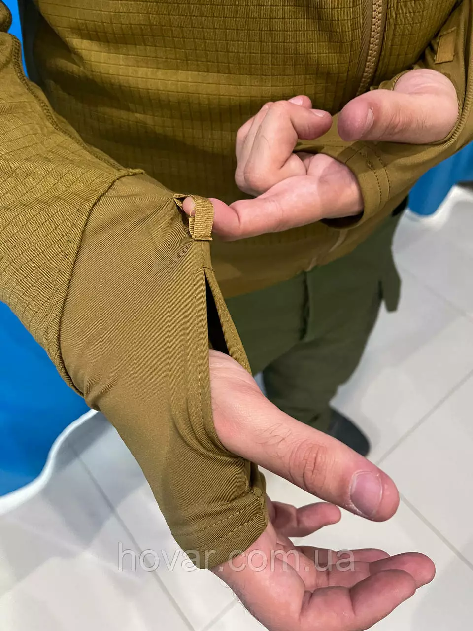 - На рукаві еластична вставка з трикотажу, отвір для великого