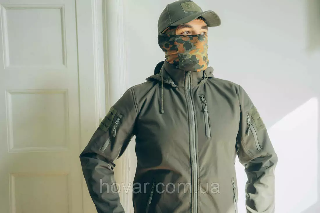 Військова куртка виготовлена із міцної водостійкої тканини SoftShell. Забезпечує хорошу терморегуляцію та захист від вітру та холоду за допомогою флісової підкладки.
