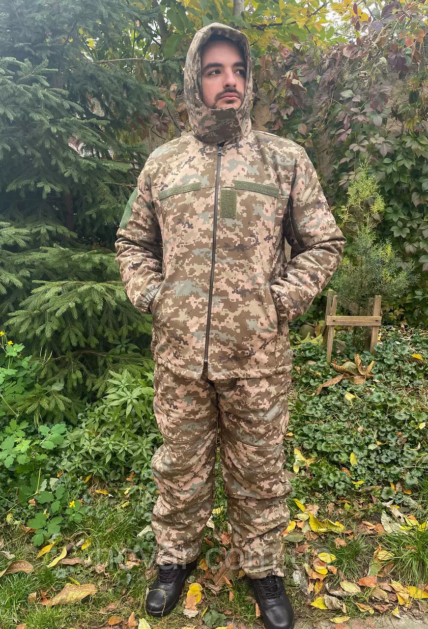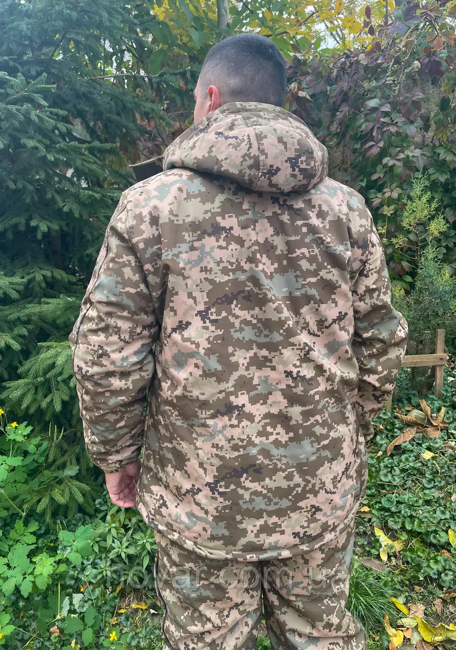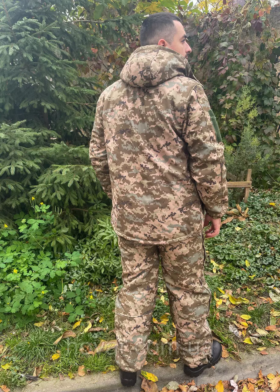 Зимова військова форма софтшел: бушлат + штани піксель ЗСУ L