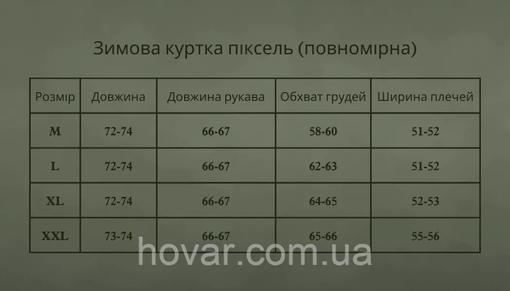 - Тканина: «софтшел» з мембраною 260 гр/м2